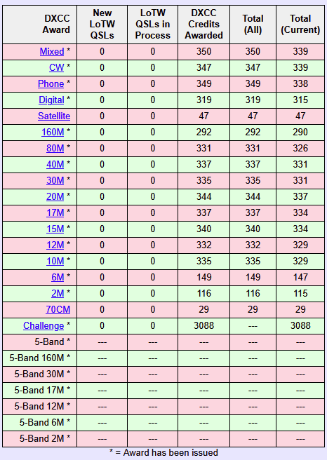 50 MHz DXCC # 1367 October 24, 2014144 MHz DXCC # 181 March 23, 2018 W5ZN DXCC CreditsOctober 14, 2025